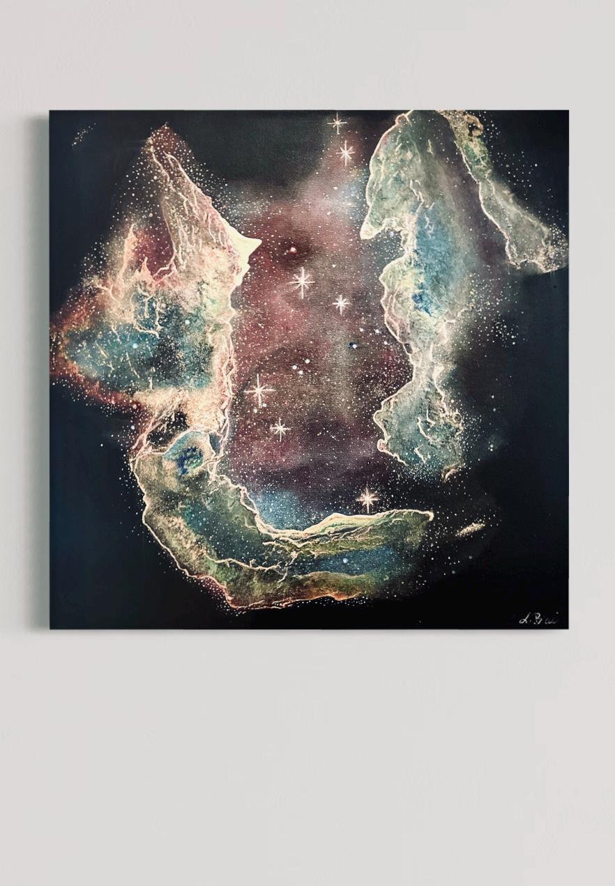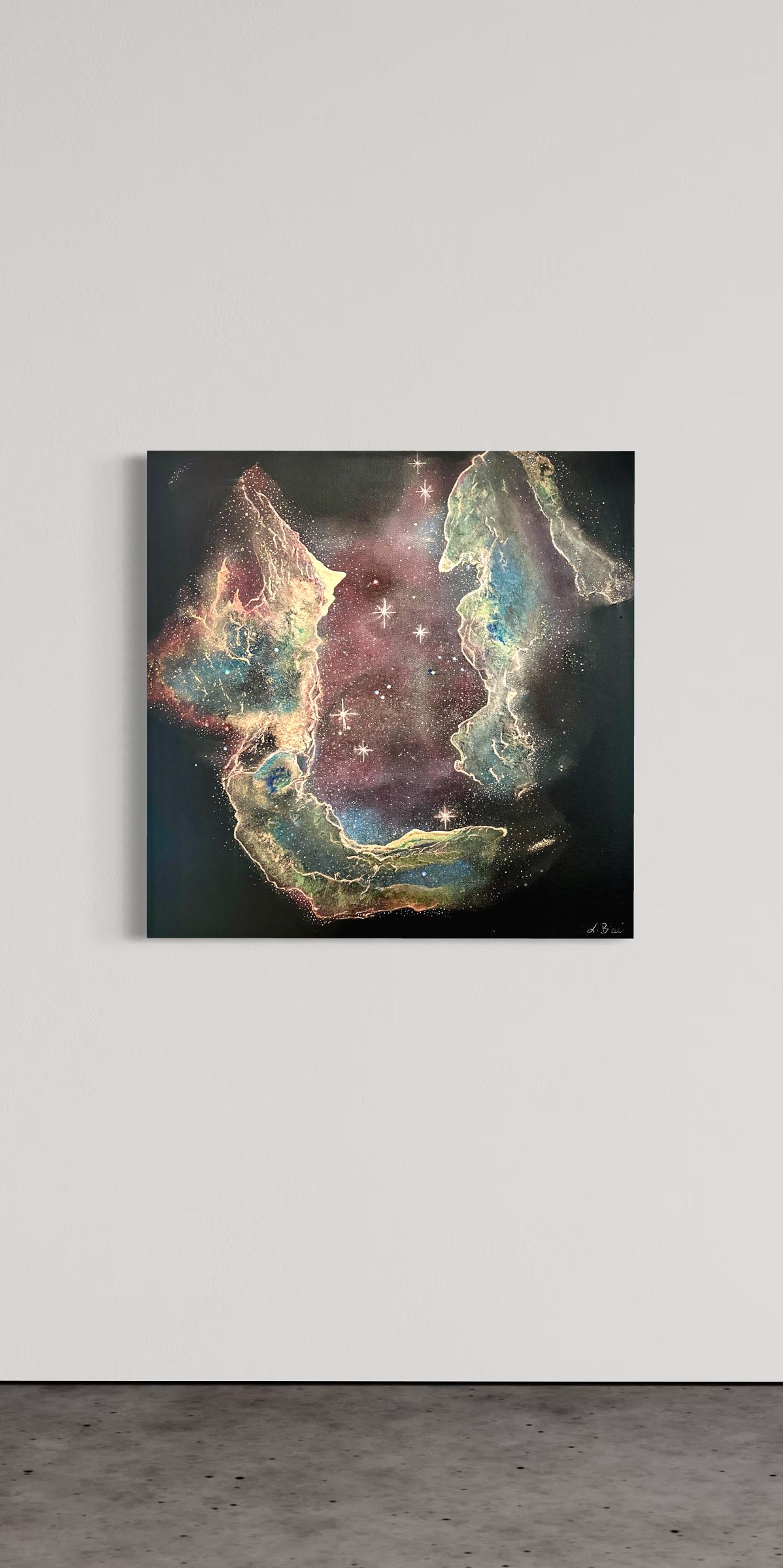 Rather than a direct photograph, this artwork reimagines the science of star birth as an emotional, abstract landscape—where color, texture, and light reveal both the mystery of the universe and the inner workings of the human spirit.