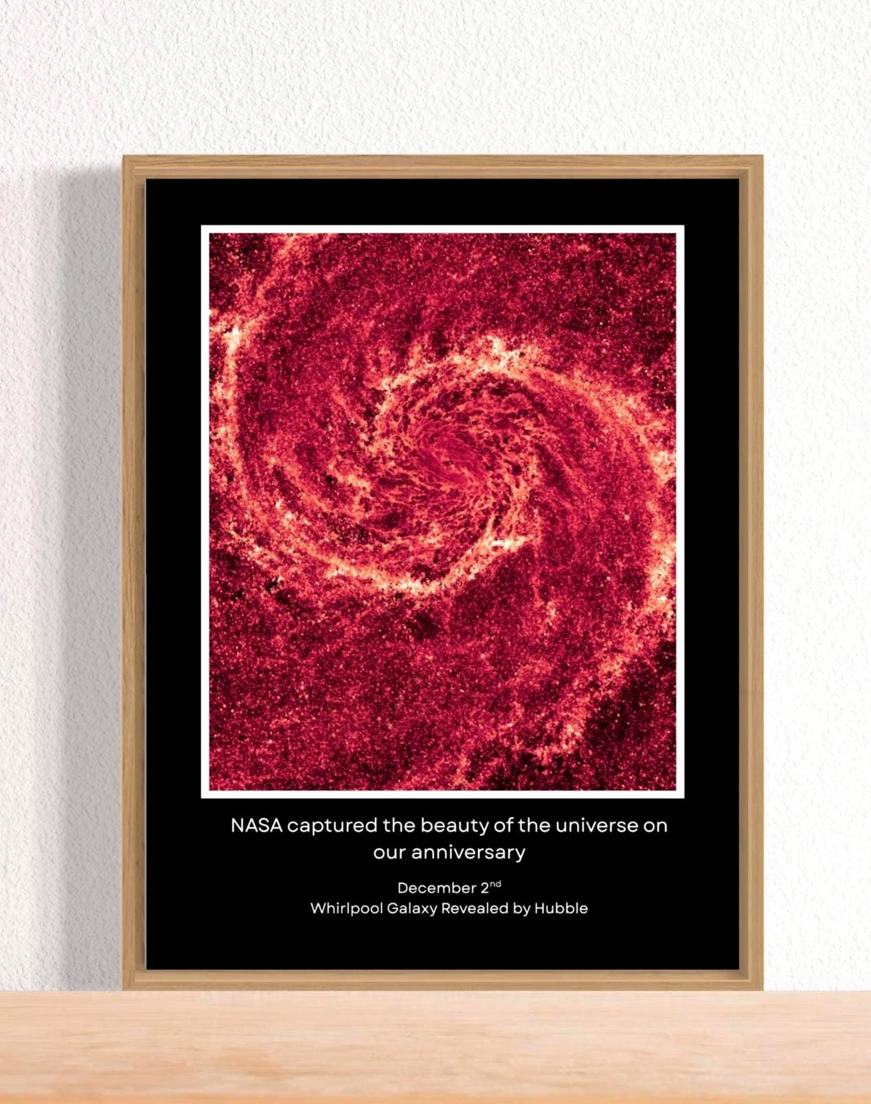 ✨ Turn your special day into artwork that captures the beauty and wonder of the universe. This custom print features the image captured by NASA’s Hubble Space Telescope on your chosen date. Whether it’s a wedding date, anniversary, or bithday gift this artwork is truly a one-of-a-kind gift and/or a personal keepsake.