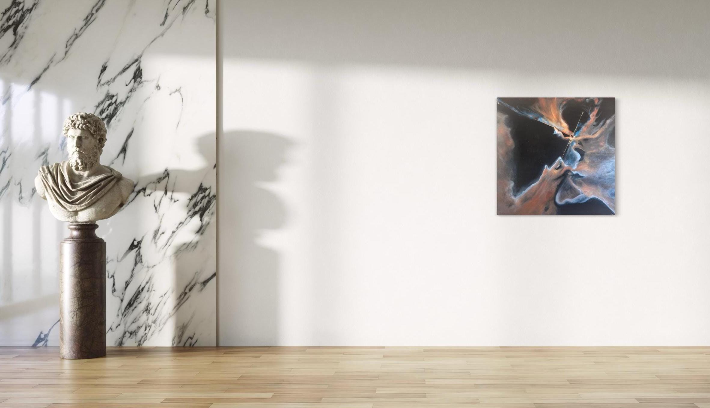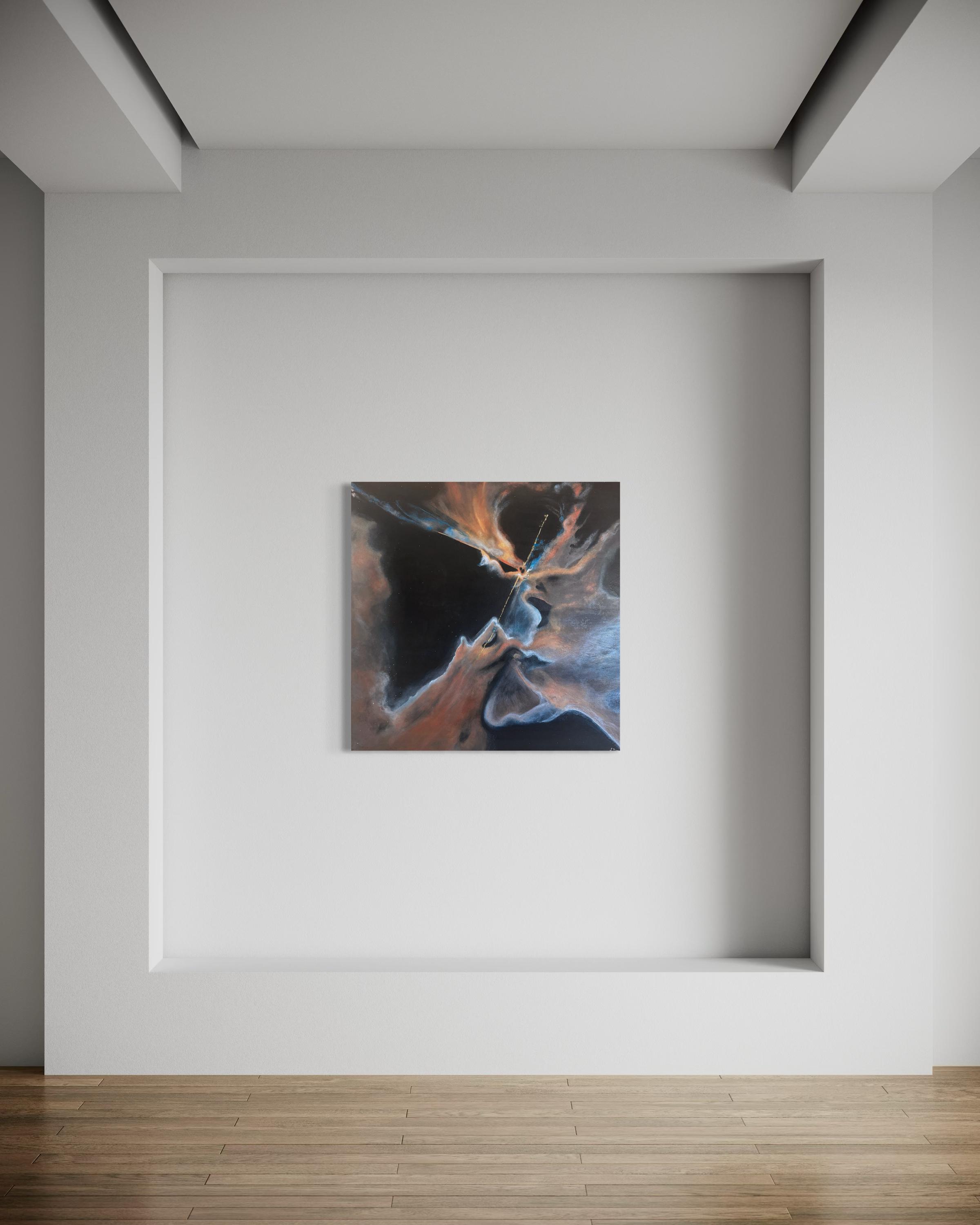 Rather than a direct photograph, this artwork reimagines the science of star birth as an emotional, abstract landscape—where color, texture, and light reveal both the mystery of the universe and the inner workings of the human spirit.