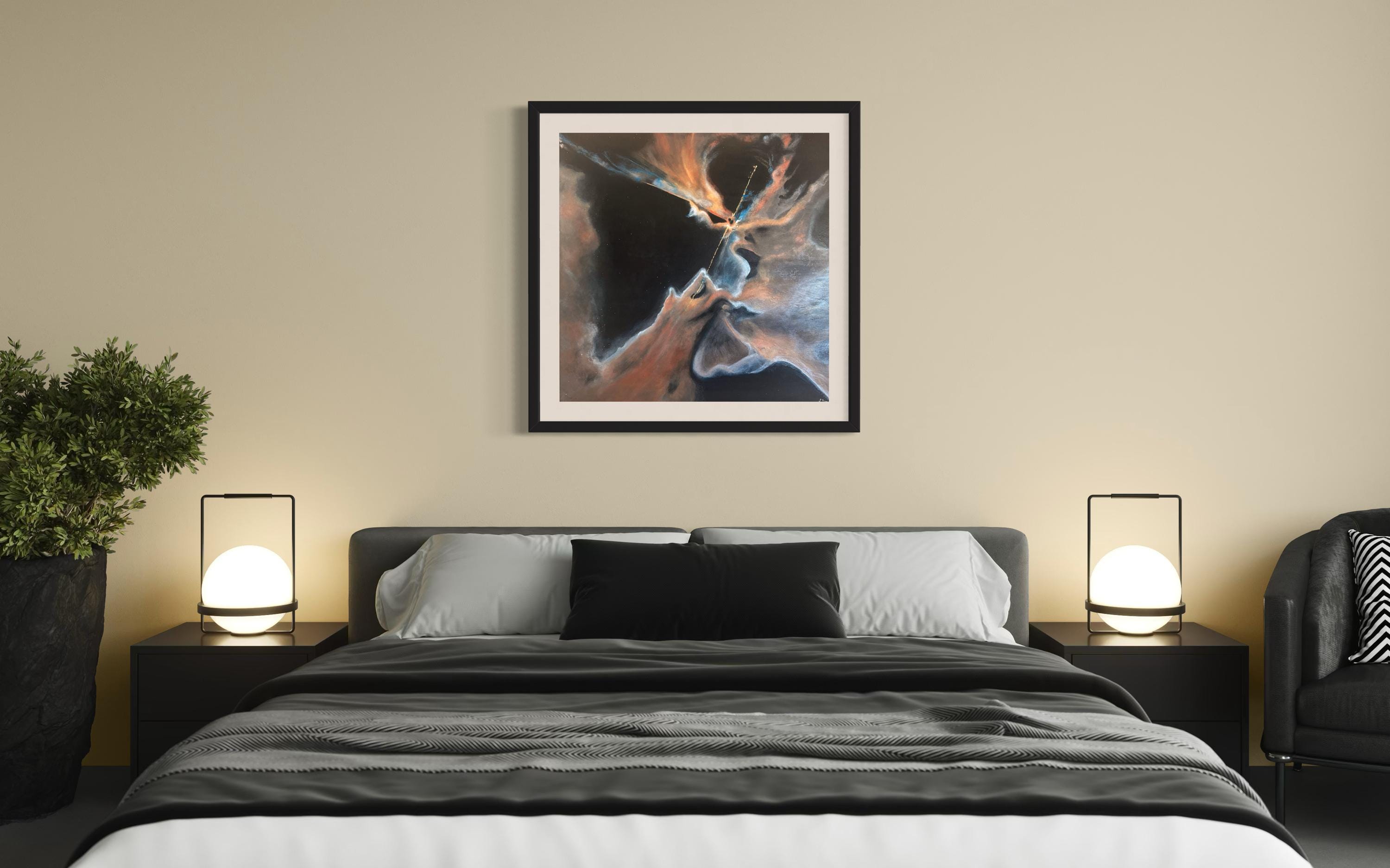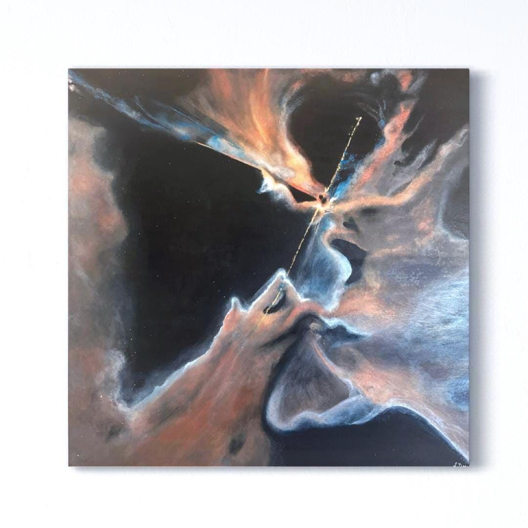 This piece is inspired by Hubble’s capture of Herbig-Haro 24—a newborn star ejecting golden jets of light into surrounding dust and gas. Each print comes from my original hand-painted artwork, giving you a personal, one-of-a-kind interpretation filled with depth and vibrant detail that a raw NASA image cannot offer.