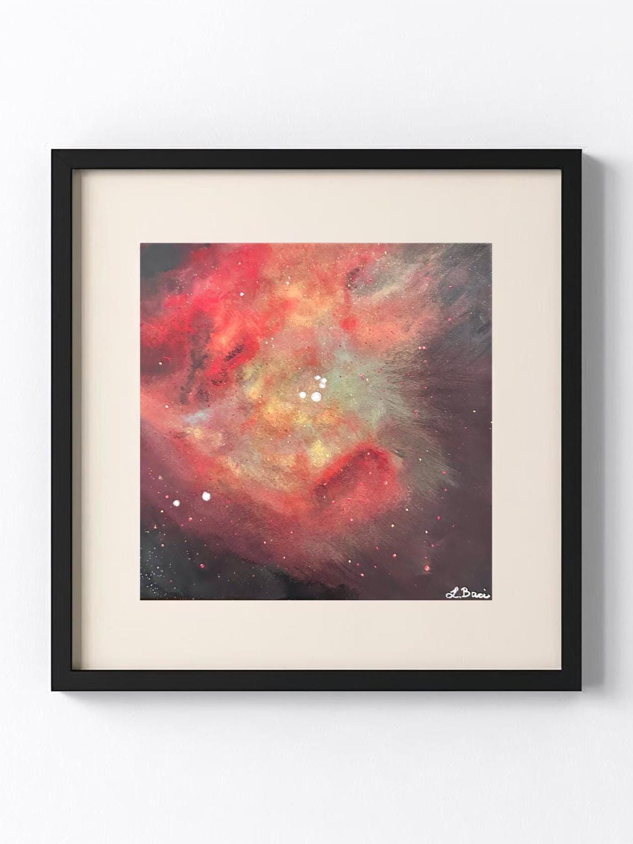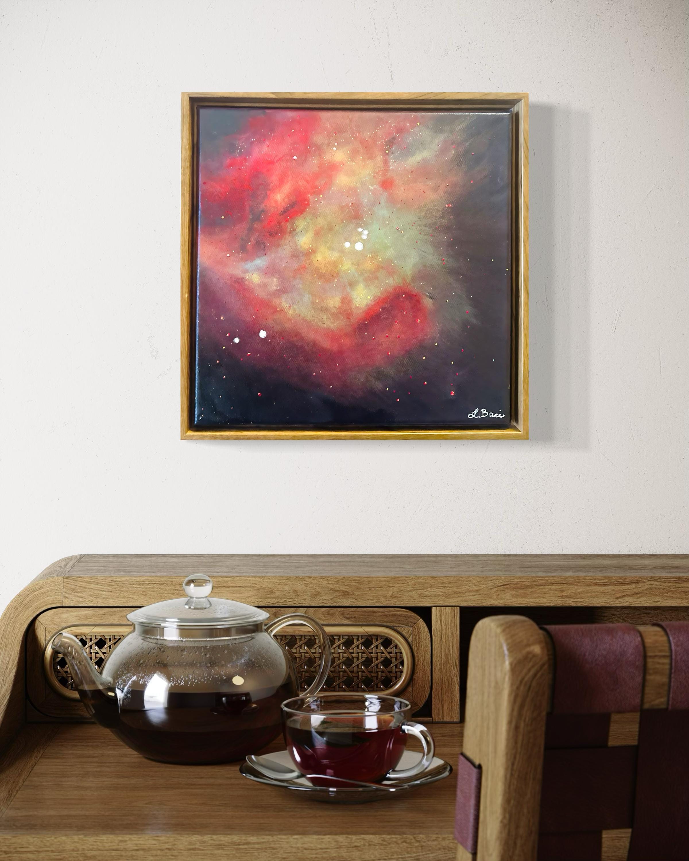 Bring the cosmos into your space with this hand-painted art print inspired by NASA and the James Webb Space Telescope. The Orion Bar, captured by the James Webb Space Telescope is what inspired this beautiful piece of art, made to elevate any space perfect for all interior styles.