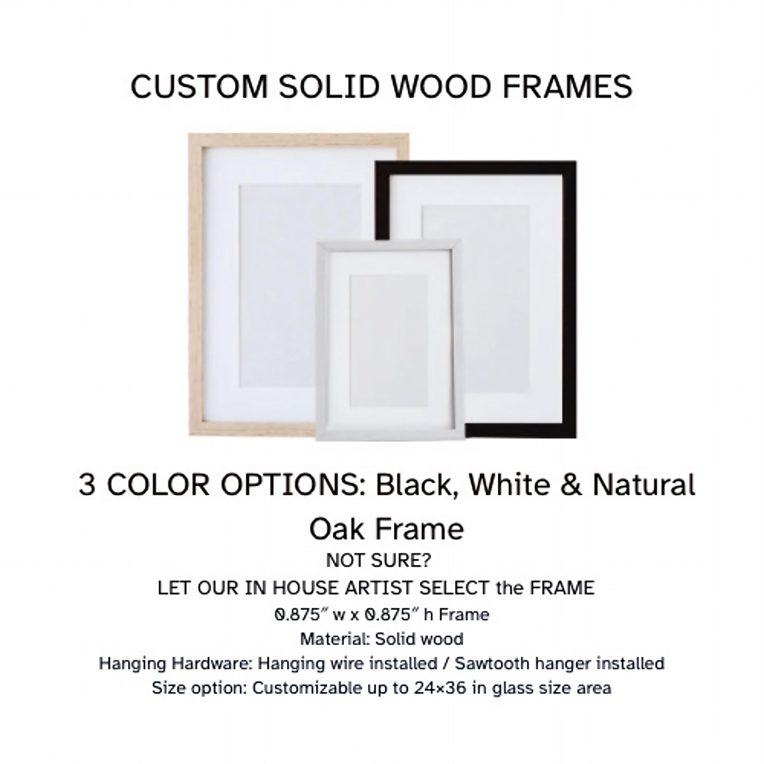 Framing available in all standard sizes (with non-glare acrylic glazing)