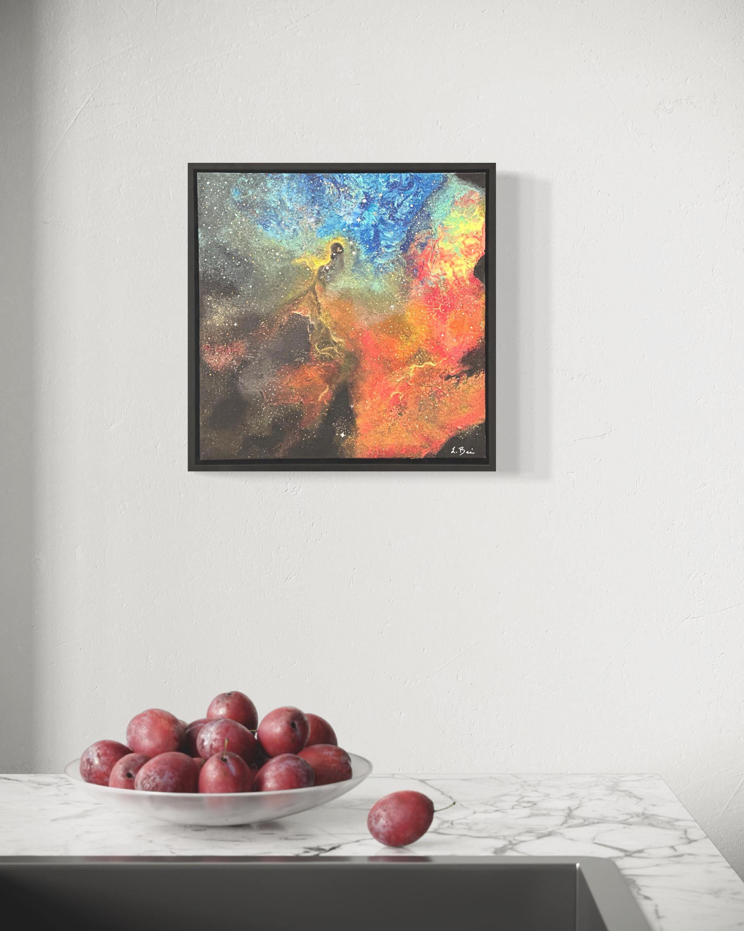 Bring the cosmos into your space with this hand-painted art print inspired by NASA and the James Webb Space Telescope. NASA's Hubble Telescope captures the enchanting IC1396, "Elephant's Trunk Nebula" a young star cluster.