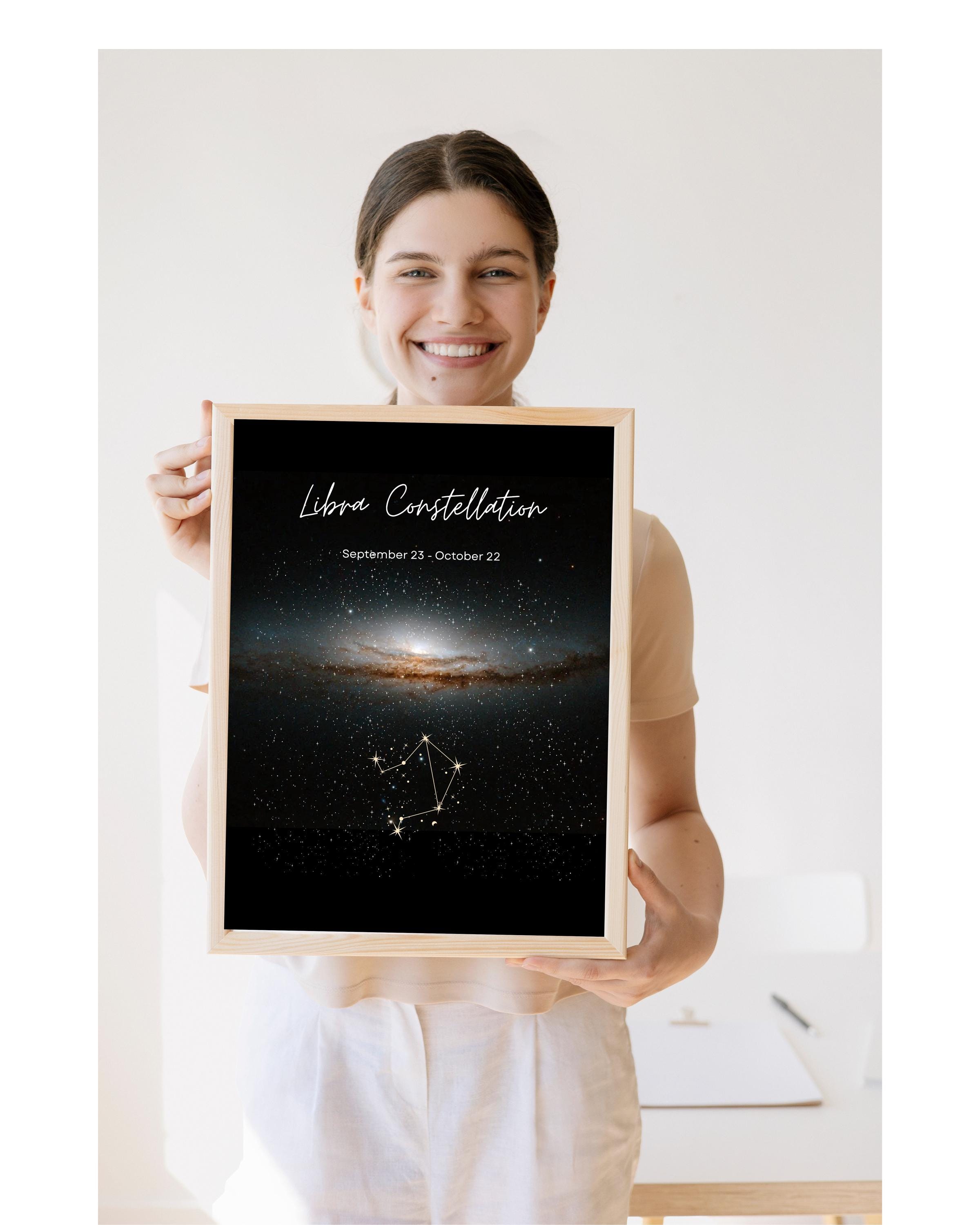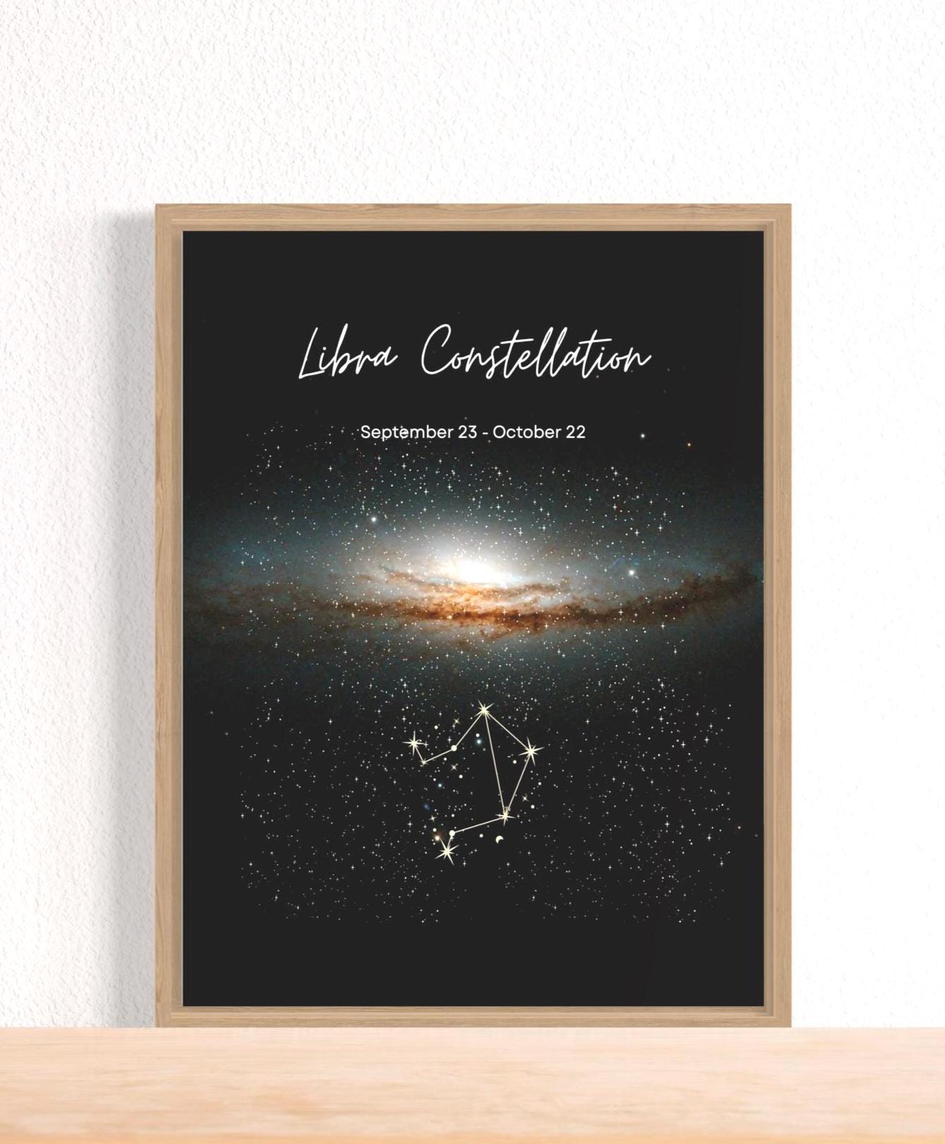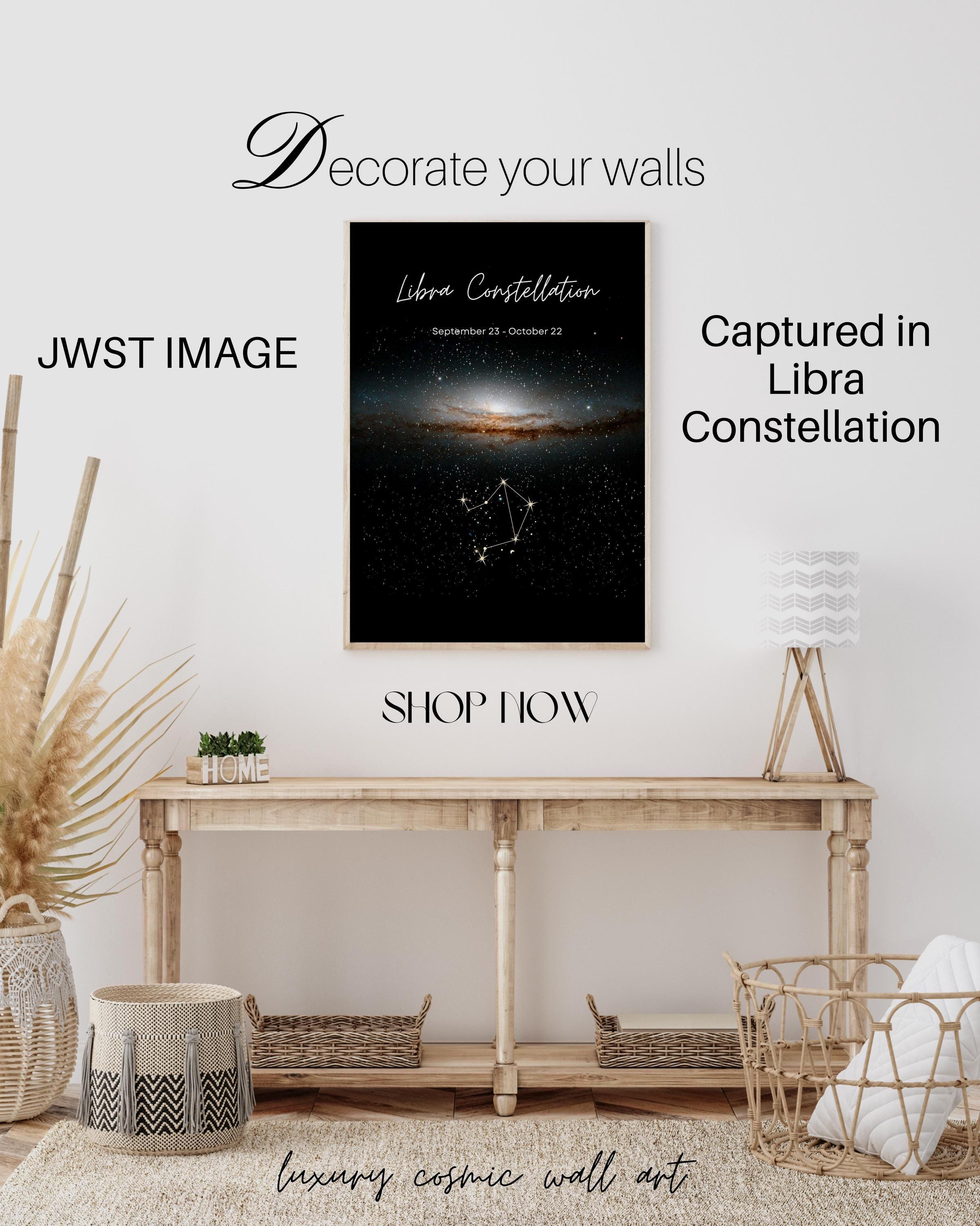 Gallery Poster featuring image captured in Astrological Sign Libra Constellation. NASA discovered NGC 5793, a spiral galaxy over 150 million light-years away in the constellation of Libra. This galaxy has two particularly striking features: a beautiful dust lane and an intensely bright center — much brighter than that of our own galaxy, or indeed those of most spiral galaxies we observe. Libra constellation star pattern embedded in design by real artist, no AI generation, made in US.