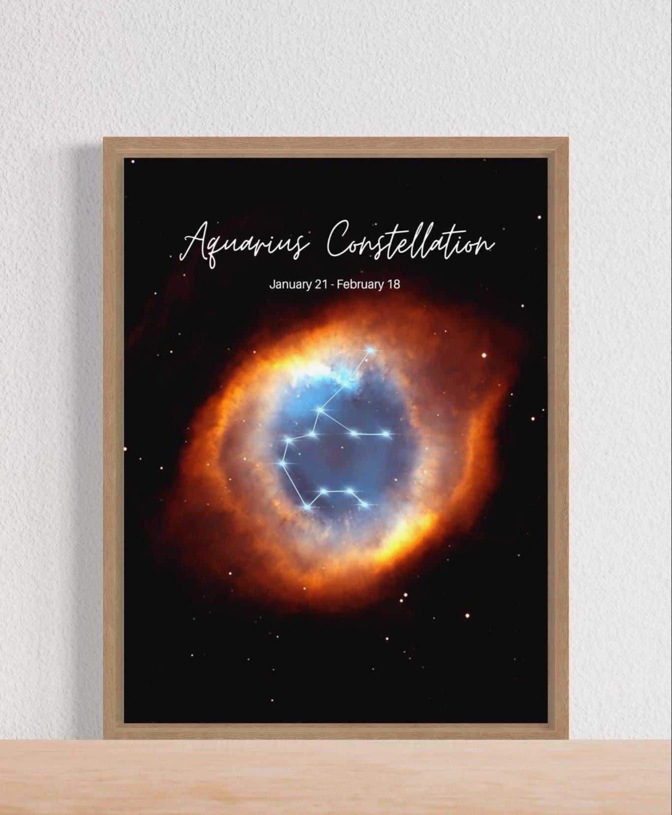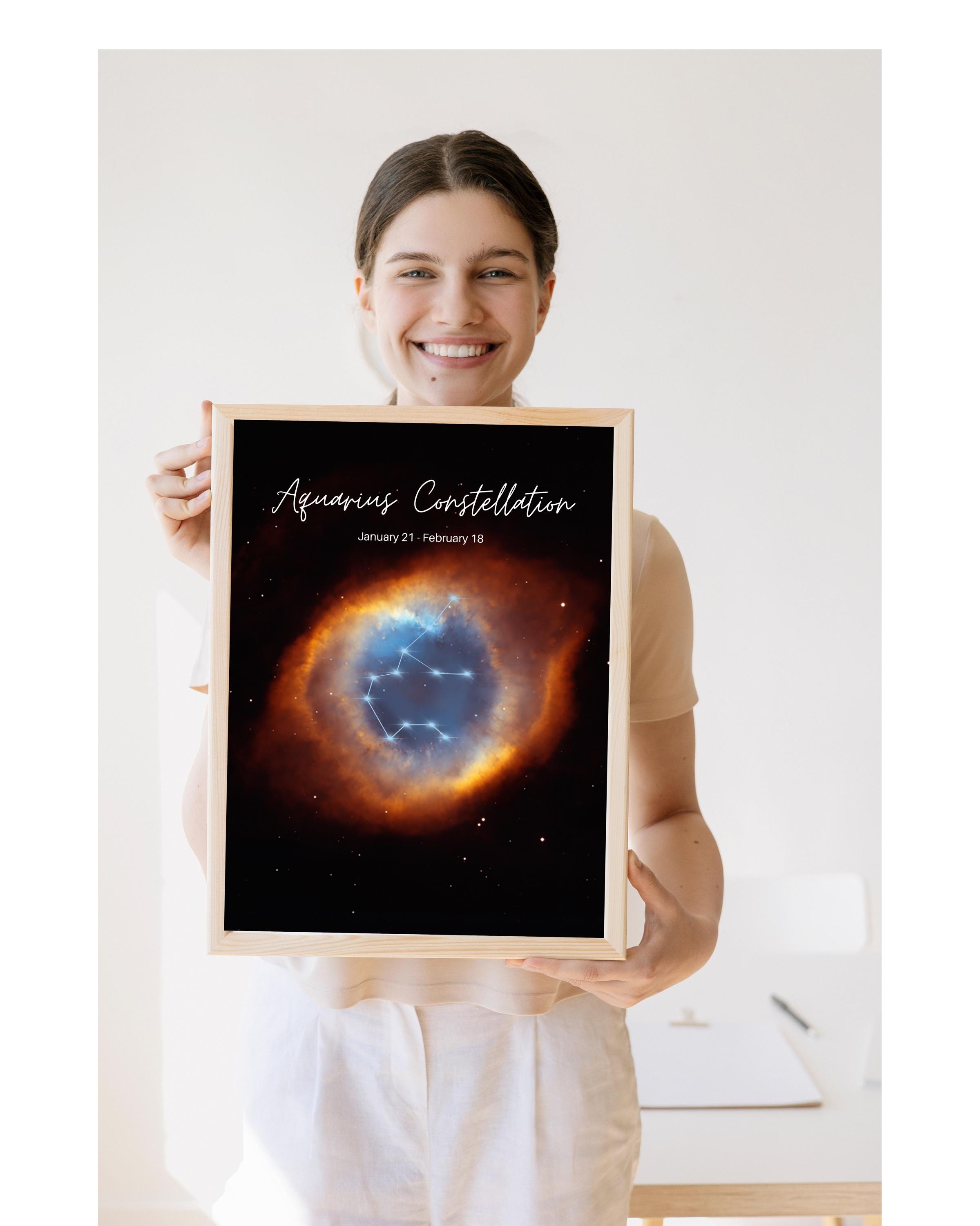 Gallery-quality poster of the Astrological Constellation Aries showing what NASA's Hubble Space Telescope captured in that constellation. Caldwell 63 is right in our cosmic neighborhood — only about 650 light-years away in the constellation Aquarius. The artist has embedded the Aquarius star map into the image making this artwork unique and one of kind, no AI generated artwork made by award winning artist.