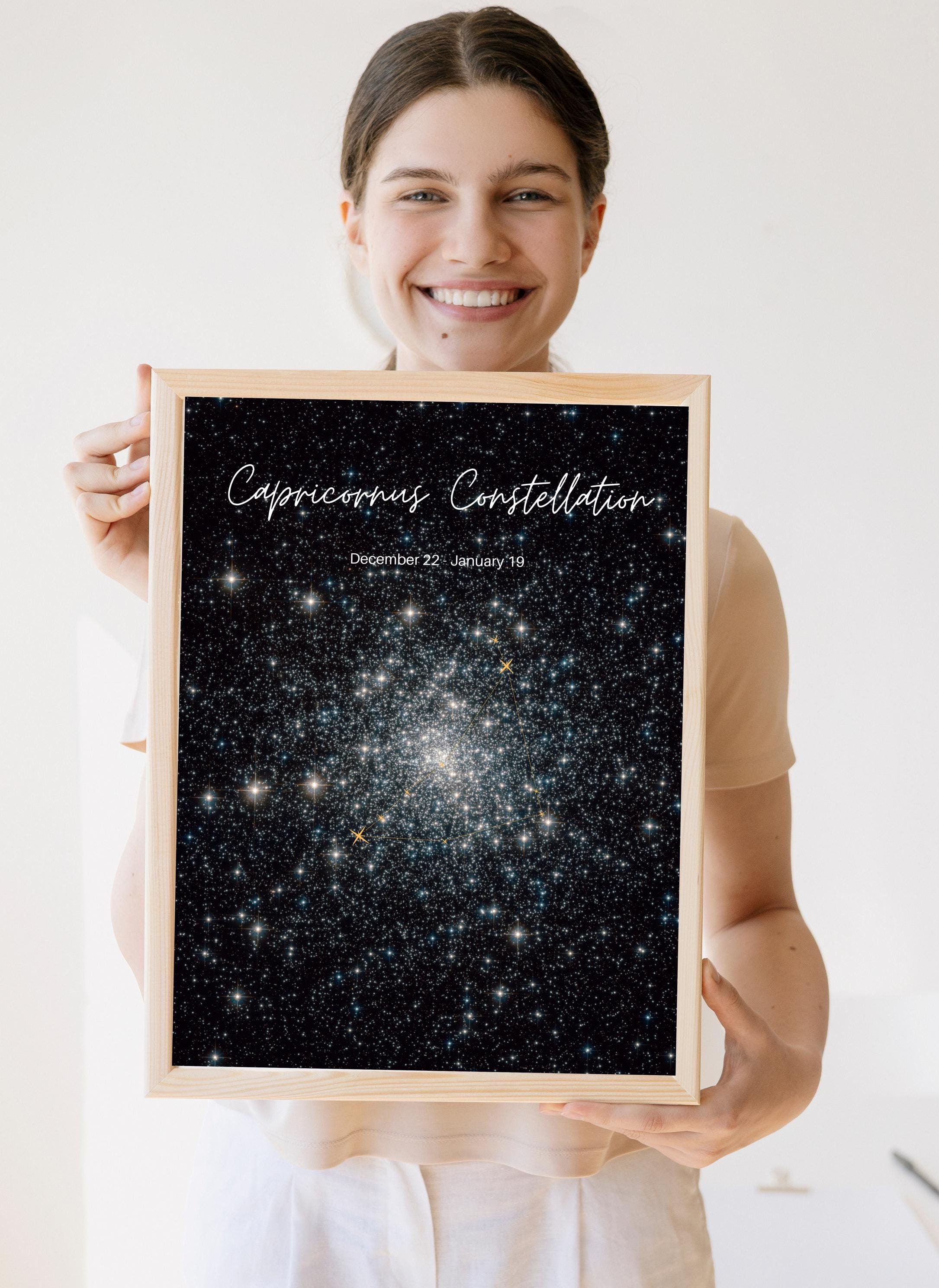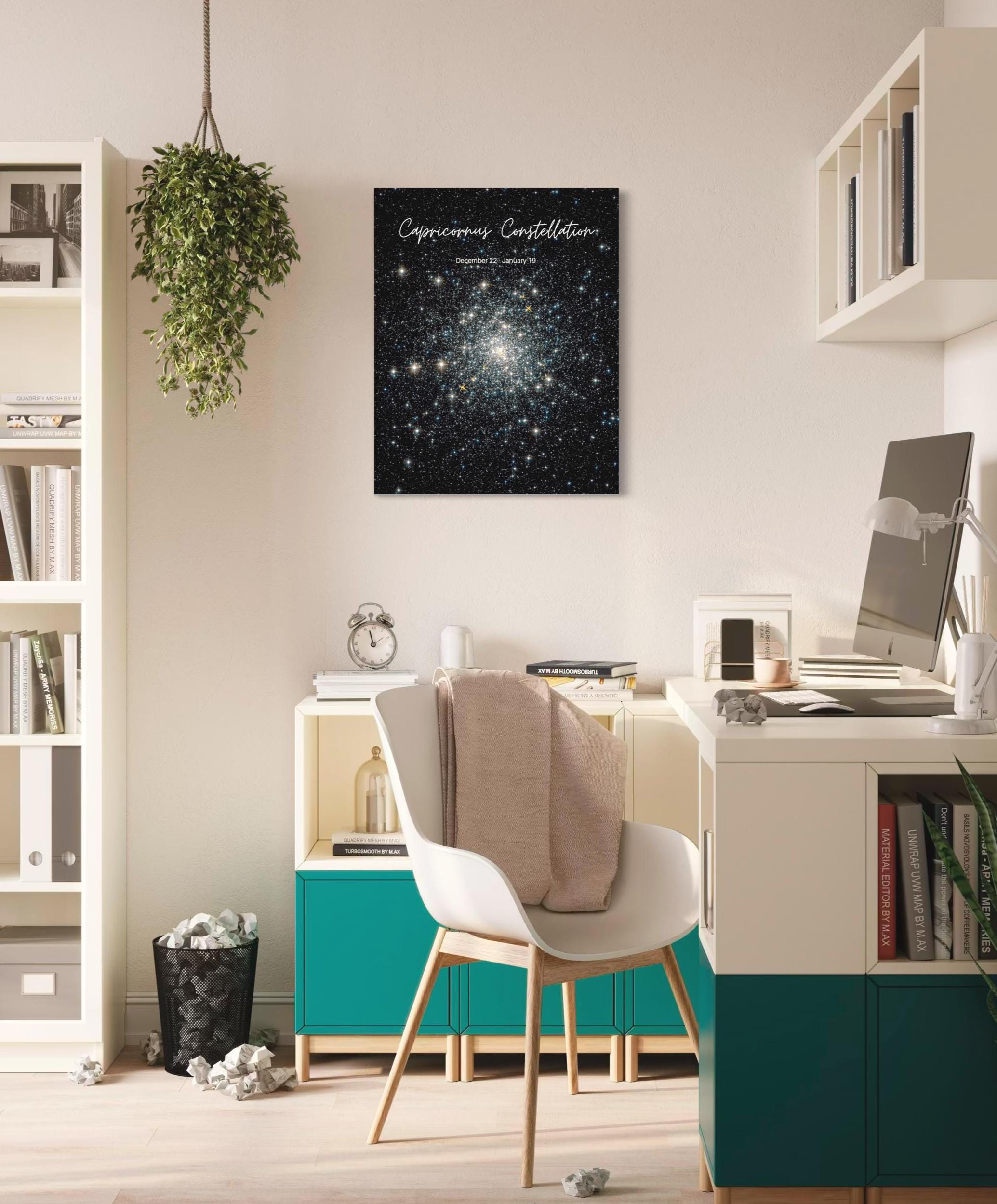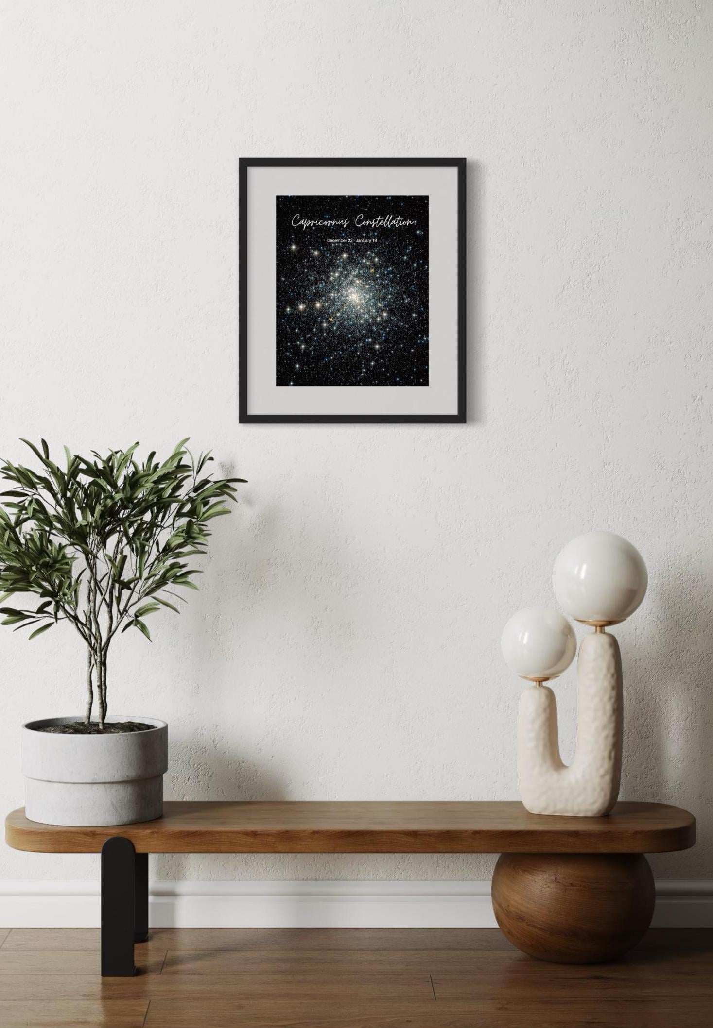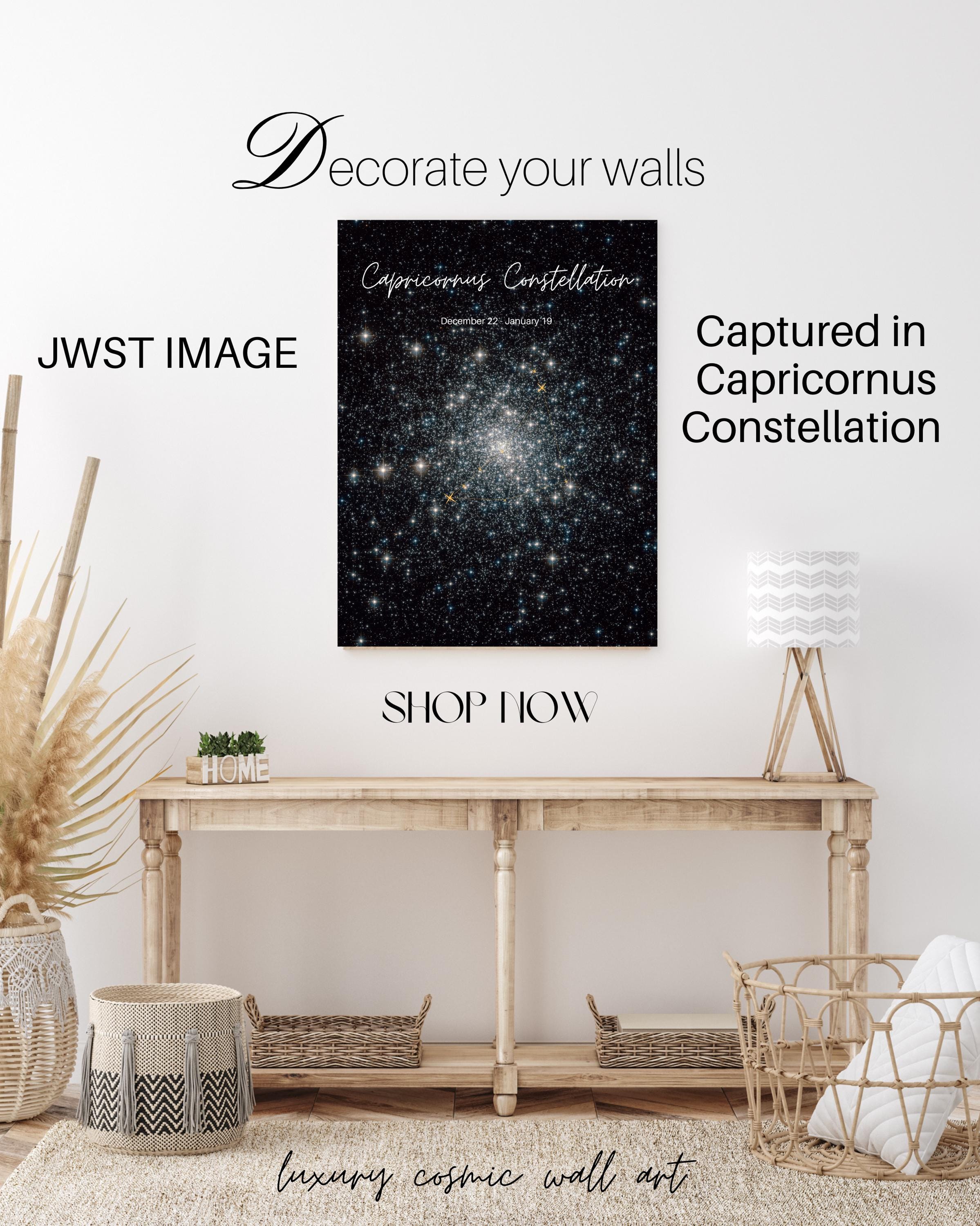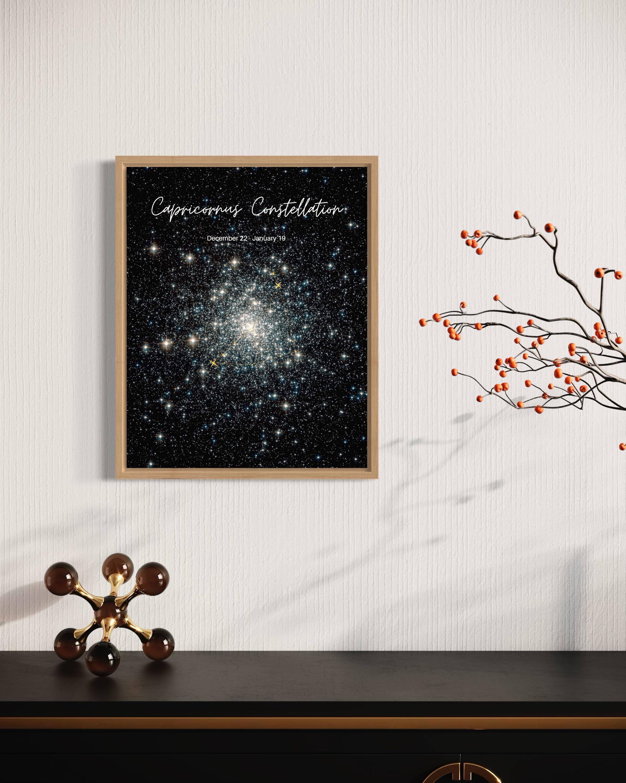 Gallery-quality archival poster of NASA image captured in Astrological Constellation Capricornus, it is "Messier 30" populated by densely swarm of stars; located roughly 28,000 light-years from Earth in the Zodiac constellation Capricornus.