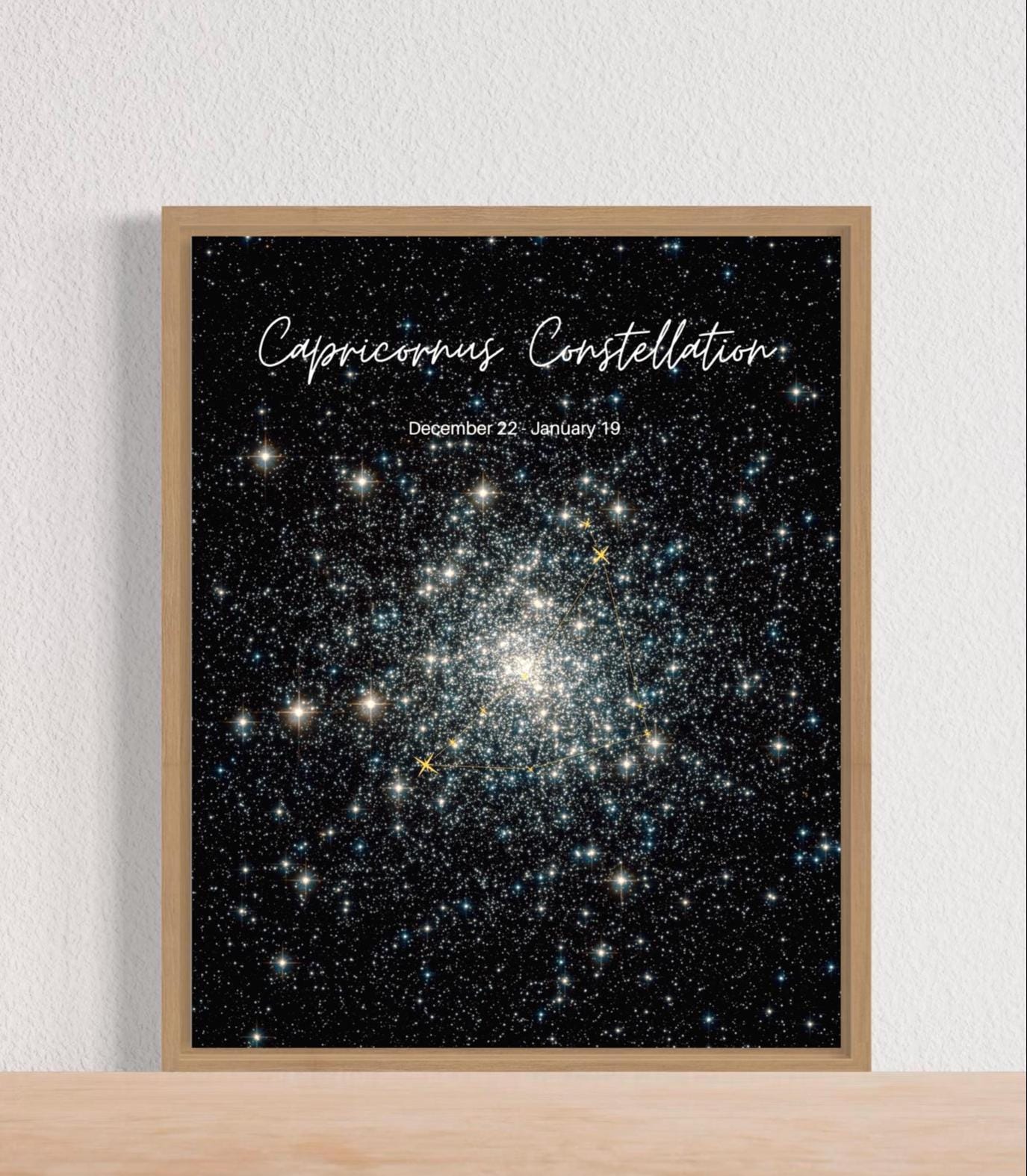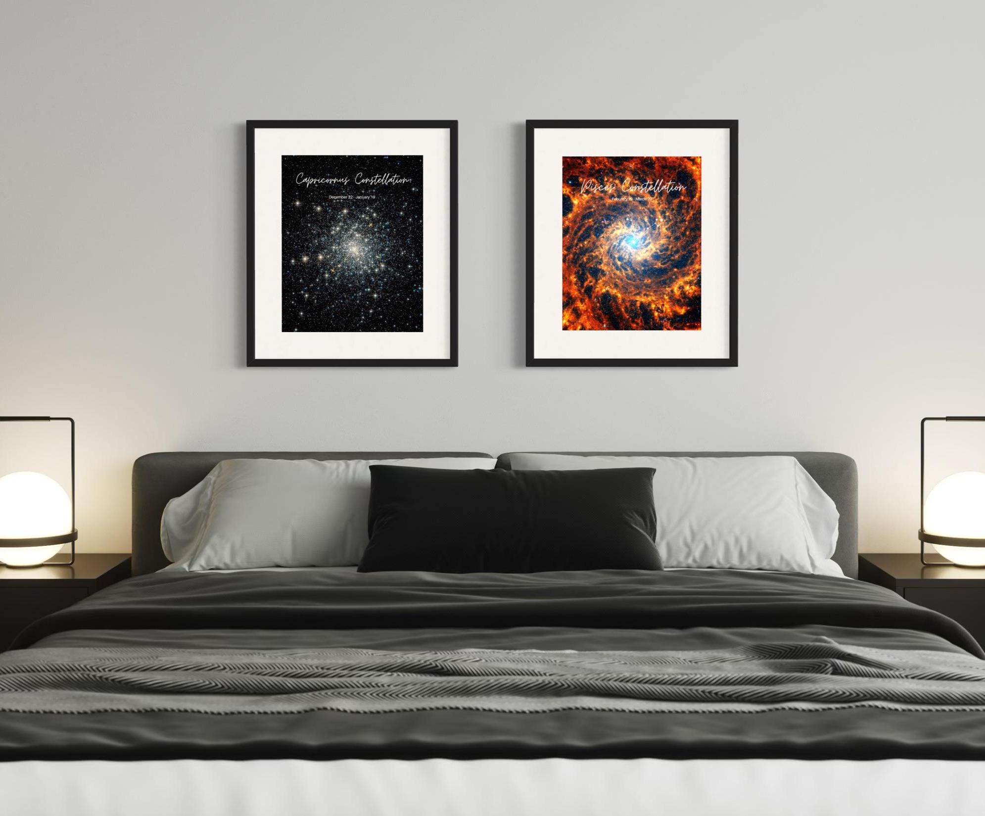 Personally designed by the artist using authentic JWST imagery, with Zodiac star map in image, custom artwork no AI generated image.